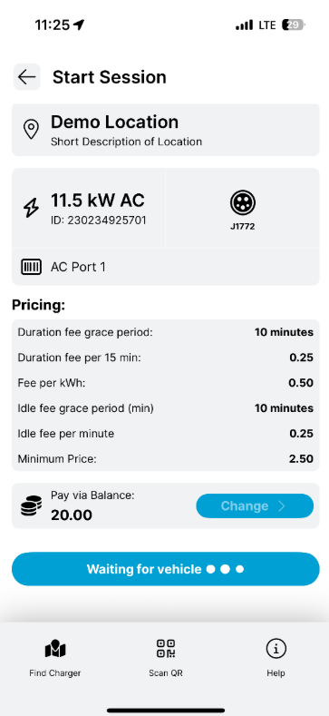 The app will show “Waiting for Vehicle.”